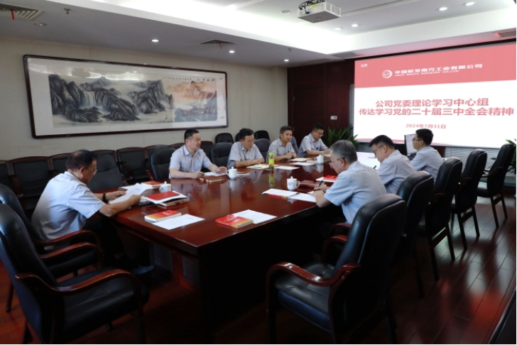 7月31日,中国航发南方党委理论学习中心组举办学习会,传达学习党的二十届三中全会精神,学习习近平总书记在中共中央政治局第十五次集体学习时的重要讲话、习近平总书记关于作风建设的重要论述等内容。中国航发南方党委书记、董事长杨先锋主持学习会并做重点研讨发言。
